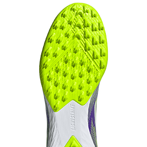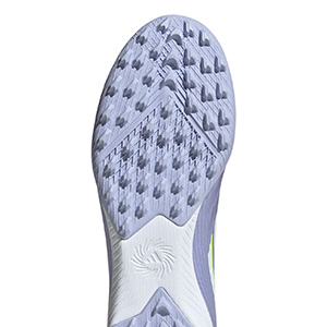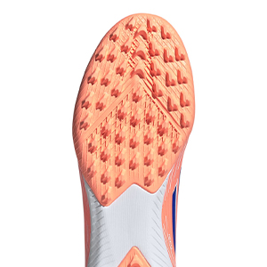 人工芝ピッチでの全方向への動きに優れたグリップ性を発揮する円錐型スタッドを使用した軽量仕様アウトソール。前足部内側のトライアングルスタッドの円形配置設定により、前後左右へのモーションやターンに貢献。