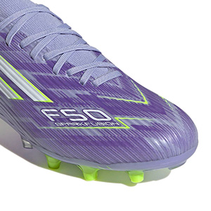 女性に最適なグリップと快適性を提供するために設計されたTPUベースのアウトソール。 半円錐形のスタッドがスムーズなターンと蹴り出しをサポート。 スタッドは天然芝と人工芝の両方に対応できるように設計。360°ターンゾーンは素早い方向転換に貢献。