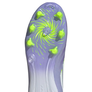 様々なサーフェイスでの使用を想定して開発された、汎用性の高い楕円型スタッドを使用したアウトソール。硬さのあるピッチでの衝撃拡散の向上と最適な回転動作のサポートに貢献。