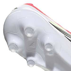 硬さのあるハードグラウンドでの最適なグリップ性、耐久性を実現。前足部内側のトライアングルスタッドの円形配置設定により、前後左右へのモーションやターンに貢献。