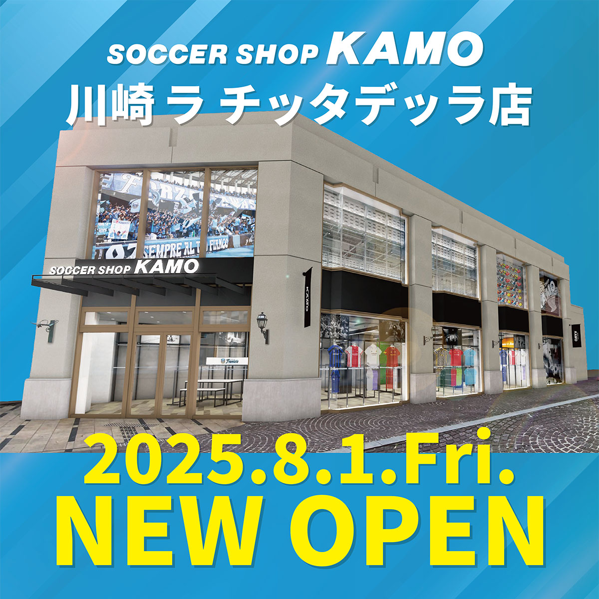 この度、8/1(金)にサッカーショップKAMO 川崎 ラ チッタデッラ店をオープンすることとなりました。