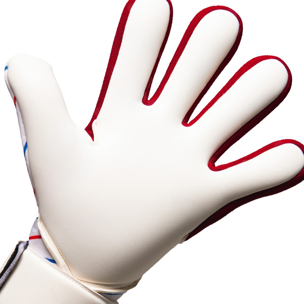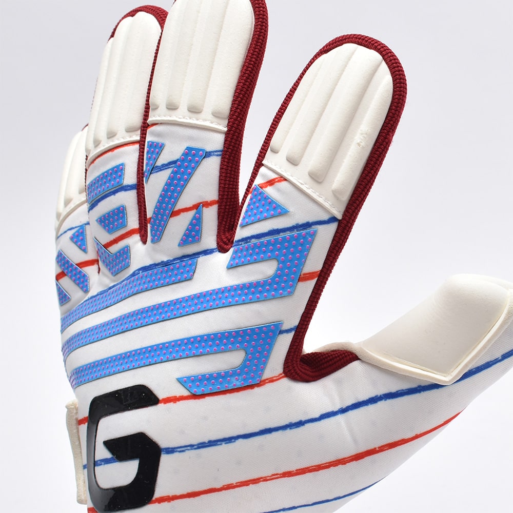 手の甲:パンチングエリアは新たに開発したガビックモイスチャープリントを採用。柔軟性を保ちながら高いグリップ力を発揮。小指側をパームから巻き込むことでフィット感が向上。