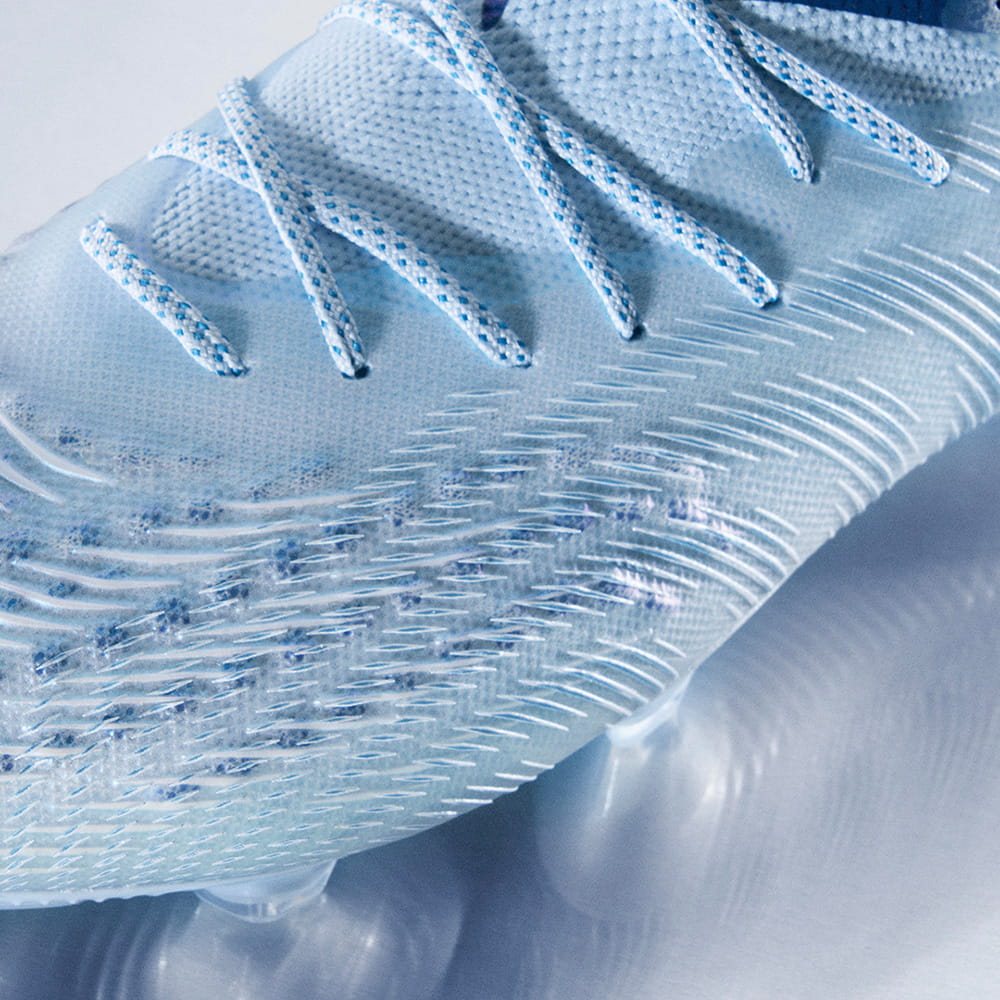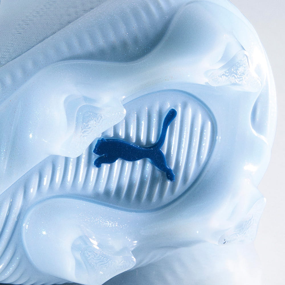 様々な動きに適応し、次の動き出しのサポートを実現する。3D仕様のFUZIONPODSはエンジニアードニット上に配置され、屈曲を妨げずダイナミックな足の動きに適応し、ボールタッチをサポート。
