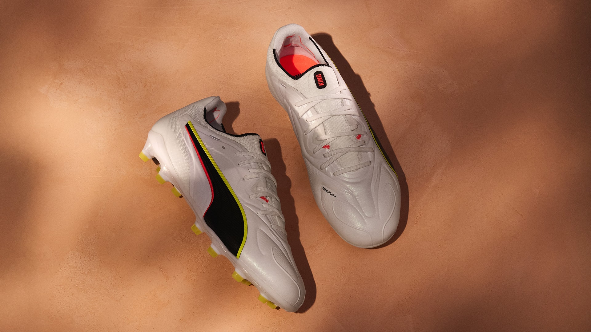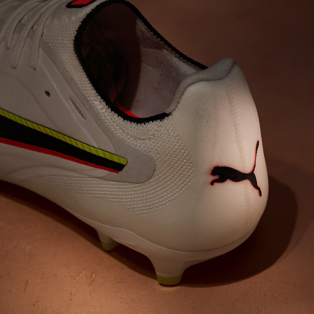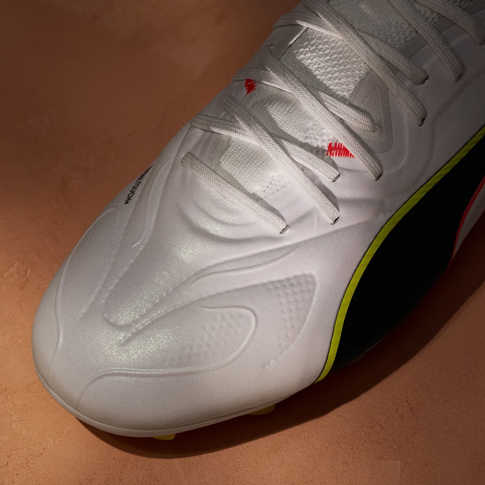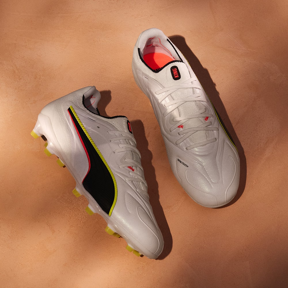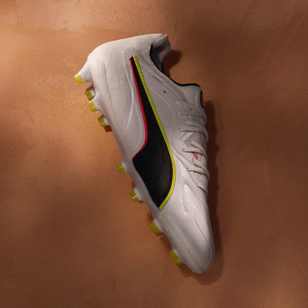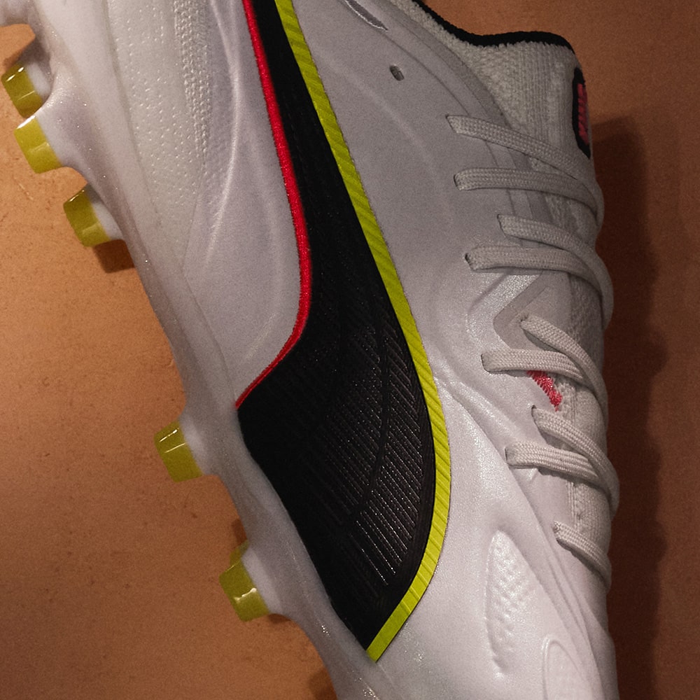 試合終了まで何度でもプレスをかけ正確なボールコントロールで素早く縦に配球し、一瞬の閃きでゴールを奪う。育成年代からA代表まで確立されつつある“機動力” と “正確性” を武器に戦うプレーヤーのパフォーマンスを最大限に引き出すスパイク、それが PUMA KING。