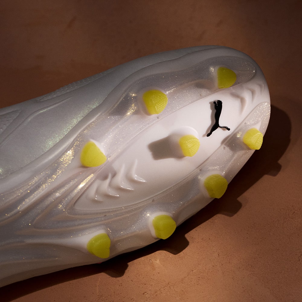 アウトソールには新しいソールユニットを採用。PebaxナイロンとPUから形成される軽量アウトソールで、丸形をベースにしたスタッドは、様々な動きにグリップ力を発揮し機動性を高める。中足部に配置されたシャンクが中足部の捻じれを抑制し、力の分散を抑える効果をもたらす。FG/AGにのみ配置したエクストラヒールカウンターが踵部分のフィット感を生み出し動きのブレを抑制する。この新しいアウトソールがピッチを支配するプレーを生み出す。