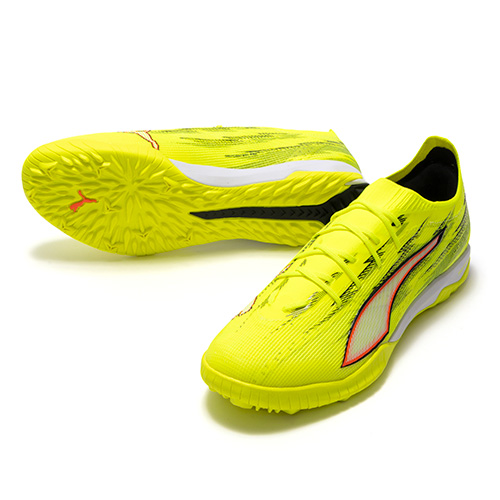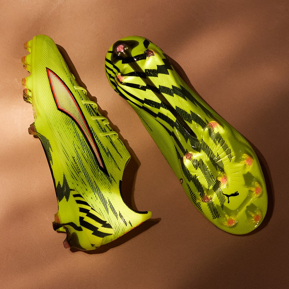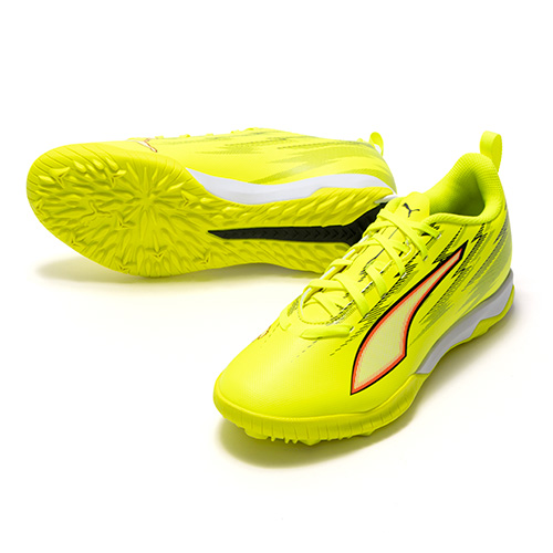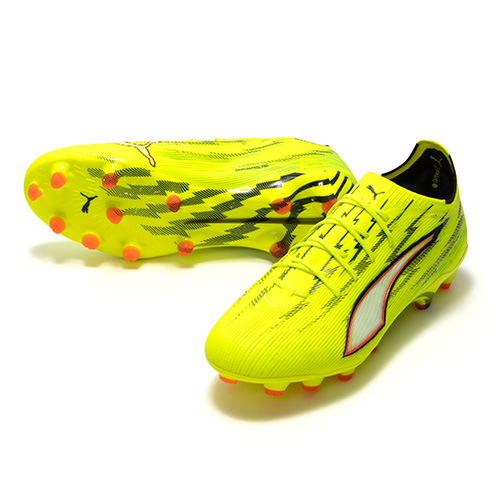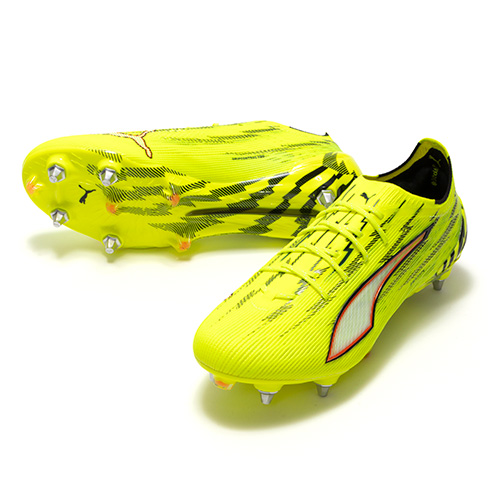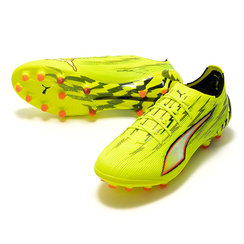 ULTRAの為に開発された、プーマ独自のアウトソール。軽量なPebaxをベースにピッチを掴み、そして強力な蹴り出しと加速力を生み出す革新的なスタッドシステムを採用。エネルギーリターンを最大化し、更なる加速を生み出します。 スピードシステム カーボン素早い推進力をもたらす弾力のあるカーボンファイバー素材と、より速い加速を実現する革新的なスタッドの配置と方向を組み合わせています。学術的な研究から多くのテストを繰り返し開発されたT字型の『FastTrax』スタッドは、加速、ターン、クイックなフェイントに対して、最適な蹴りだしをもたらします。