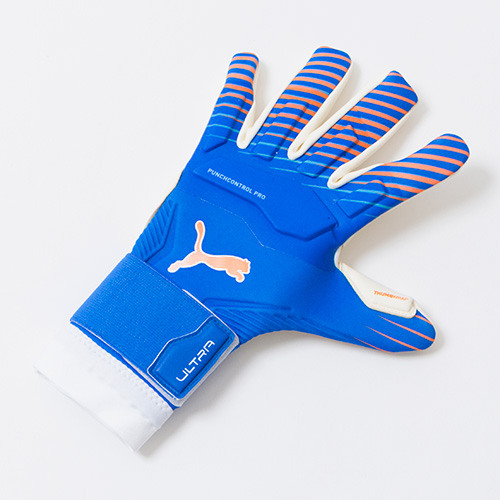 - 2025年秋冬の新色コレクション「UNTAMED(アンテイムド) PACK」のフットウェアとデザイン連動した、PUMA「ULTRA(ウルトラ)」シリーズのハイブリッドカットGK(ゴールキーパー)グローブ。