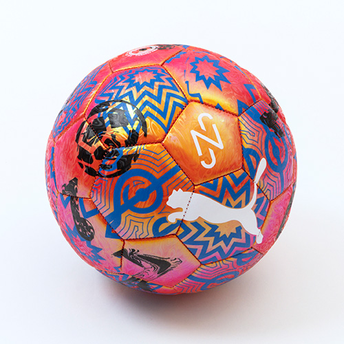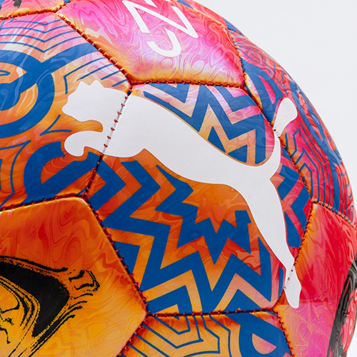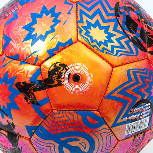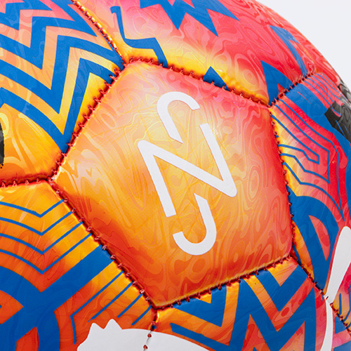 フットウェアと連動した、グラフィックボール5号球。JFA検定なし。マシンステッチ仕様でTPUにメタリックホログラム仕上げ。