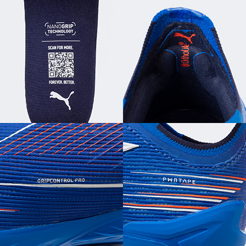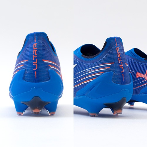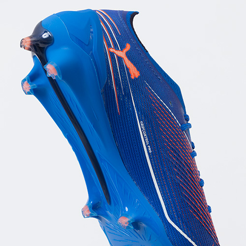 ●ULTRAの為に開発された、プーマ独自のアウトソール。軽量なPebaxをベースにピッチを掴み、そして強力な蹴り出しと加速力を生み出す革新的なスタッドシステムを採用。エネルギーリターンを最大化し、更なる加速を生み出す。学術的な研究から多くのテストを繰り返し開発されたT字型の『FastTrax』スタッドは、加速、ターン、クイックなフェイントに対して、最適な蹴りだしをもたらす。