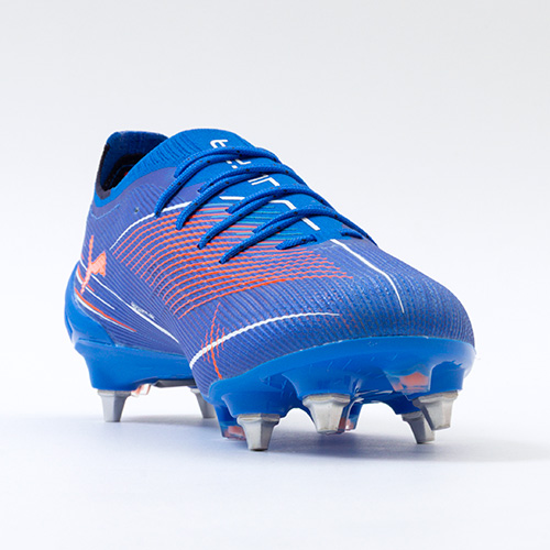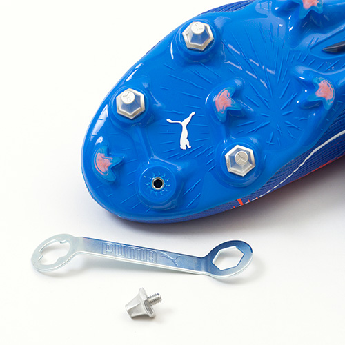 ●ULTRAの為に開発された、プーマ独自のアウトソール。軽量なPebaxをベースにピッチを掴み、そして強力な蹴り出しと加速力を生み出す革新的なスタッドシステムを採用。エネルギーリターンを最大化し、更なる加速を生み出す。学術的な研究から多くのテストを繰り返し開発されたT字型の『FastTrax』スタッドは、加速、ターン、クイックなフェイントに対して、最適な蹴りだしをもたらす。6本取替えスタッド+5本固定スタッドのミックスソールを採用。