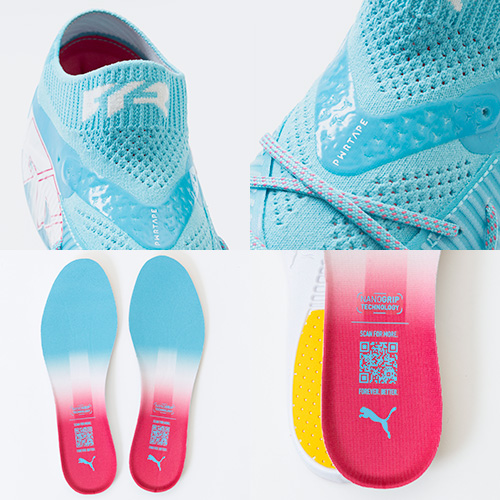 ●伸縮性の高いLYCRAと伸縮性に優れたニットで構成されたシューズのベースレイヤーは、第二の皮膚として機能し、足の動きに密着し、さらに適応性とサポート力のあるフィット感を実現します。複数に独立した3D PODSは、足の動きに沿いつつ全ての動きに対して、FUSION SKIN(フュージョン スキン)が足に沿うつくりになっています。また3D仕様のPODSがボールタッチ時の足のサポートをもたらします。