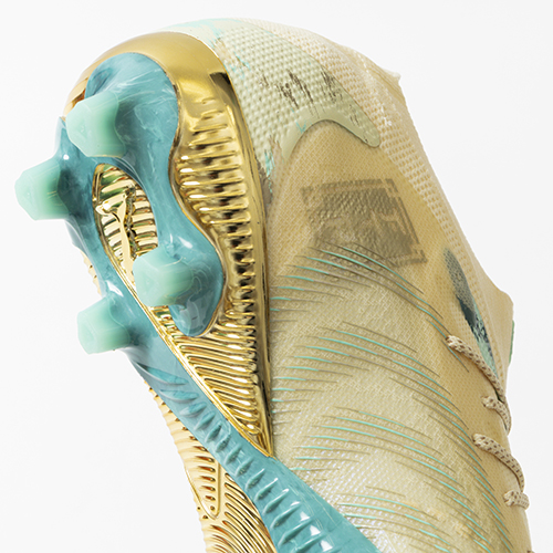 ●3D仕様のパフプリント加工でセットされたフュージョンポッズ。フュージョンスキン上に独立した形で配置されており、ダイナミックな足の動きに適応し、キッキング時のボールタッチをサポートします。