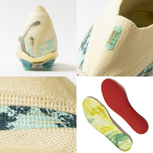 ●軽量で強度と柔軟性に優れる樹脂素材PWRTAPEを足甲部にセット。進化した独自の形状で伸縮性をもたらし更にフィッティングを高め、足首廻りを完璧にロックダウンします。PWRTAPEはより高い次元でのフィット感を実現し素早いタ加速などグラウンド上で必要なアジリティ能力を引き上げます。