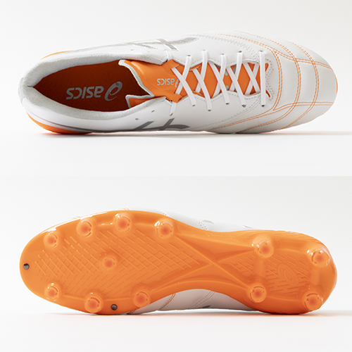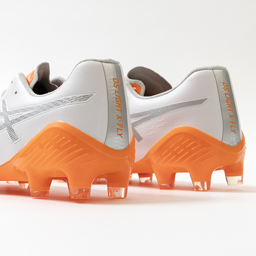 ●やわらかなSILKYWRAPがトラップ時のズレを抑制。素足感覚のフィット感で繊細なタッチを生み出す、従来の天然皮革よりもやわらかなSILKYWRAPをアッパー前足部に使用。優れた伸縮性がスパイクの中のズレを低減。いつの間にか「伸び切ってしまう」天然皮革と異なり、SILKYWRAPは試合終盤や雨天時でも伸びの戻りが持続する「耐久フィット」。