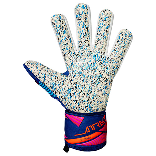 ●ネガティブカット:パームの指部分をグローブ内側に巻き込んで縫製し、滑らかな外観と指のフィット感が高く安定的なボールコントロールを実現します。