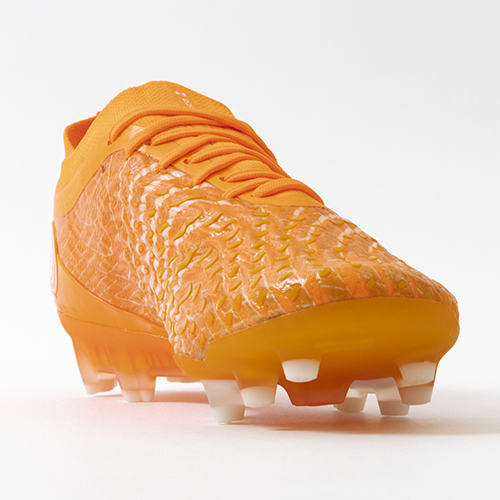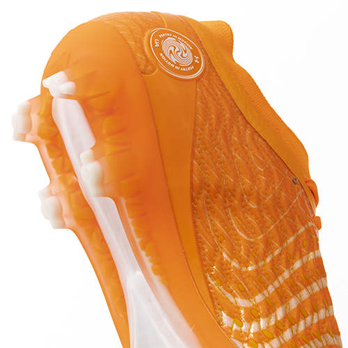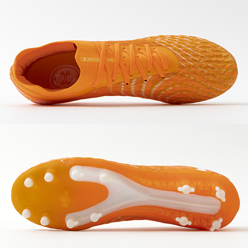 ●Shankにグラスファイバーを採用し剛性と反発性を両立。突き上げを防止し天然芝にて優れたグリップを生み出すスタッド形状と配置を採用。