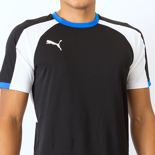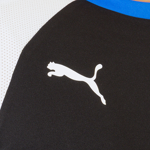 PUMAフォームストリップのグラフィック、サッカースパイクにインスパイアされた鮮やかなポップカラーが特徴です。レギュラーフィットにメッシュスリーブインサート、独自の吸水速乾機能dryCELLテクノロジーを組み合わせています。