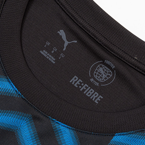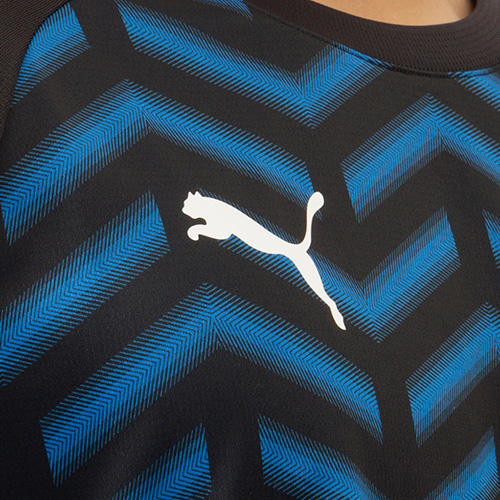 大胆な全面グラフィックと、通気性を高めるトーンオントーンのメッシュインサートが、ピッチ上での存在感を際立たせます。吸水速乾性に優れたdryCELLテクノロジーが、運動中も衣服内をドライで快適に保ち、集中力をサポート。程よいフィット感のレギュラーフィットに、両面ジャカード素材を採用。クルーネック、半袖、レギュラー丈のシンプルなシルエットに、プーマロゴがアクセントを添えています。