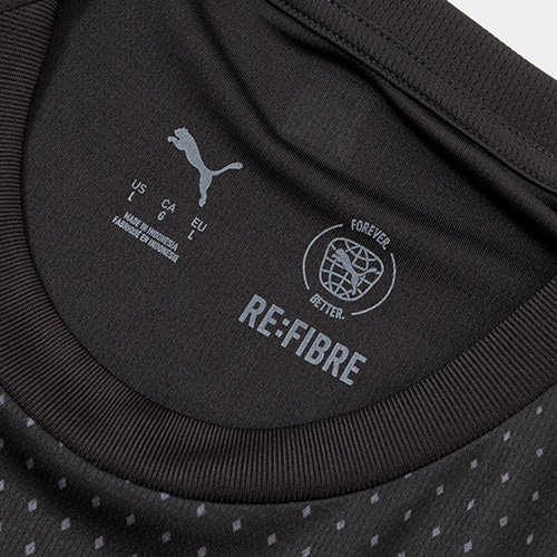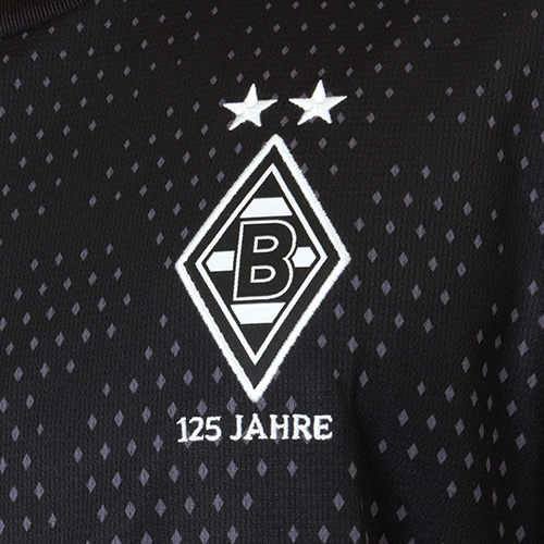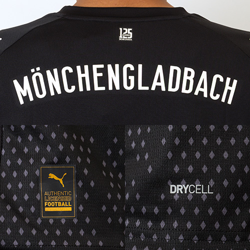 ボルシア・メンヒェングラートバッハのこれからの125周年を誇り高く見据えています。メンヒェングラートバッハの街にインスピレーションを得たデザインは、街の地図をさりげなく取り入れたもので、大小さまざまな小さなダイヤモンドが組み合わさり、繊細なデザインを作り上げています。クラブのダイヤモンドの下には「125 Years」の文字が、首の後ろ部分にはそれに合わせたロゴがあしらわれています