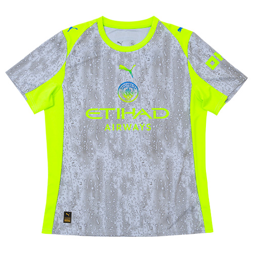 だからこそ、25/26 サードキットは“マンチェスターの天気”に敬意を表したデザインに。雨の日も晴れの日も、シティを愛するすべての人へ捧げる一着。