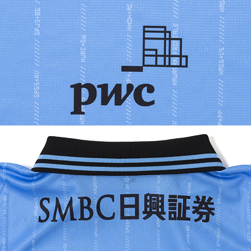 川崎市のクラブにゆかりのある場所の座標コードを使用し、トーナルカラーのストライプ柄に採用。クラブの伝統とベースを置くホームタウン川崎との繋がりを、レトロクラシックに落とし込んだデザイン。