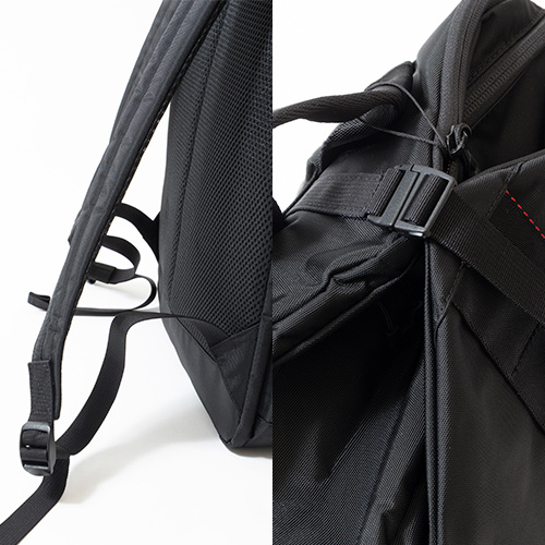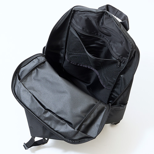 ●16インチ程度のPCに対応したPSスリーブを背胴に完備。開口部の位置を変更することで、かばんを背負ったままでもPCを出し入れしやすくなっている。