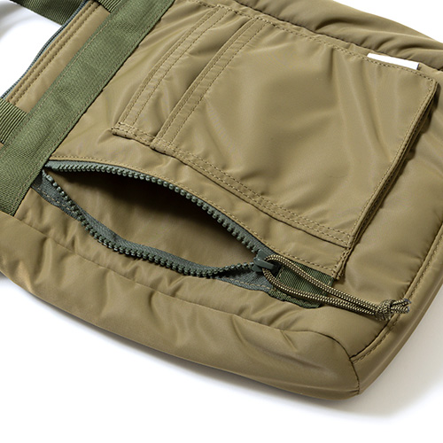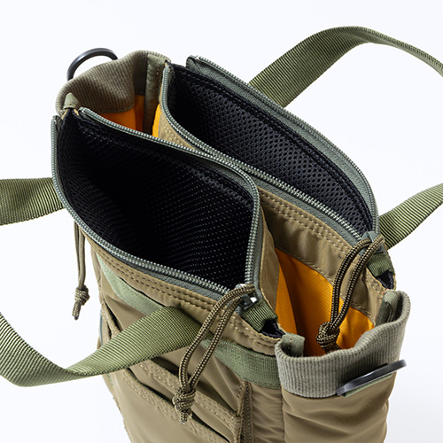 ●フロントに配したジップポケットはジップのエンド部分にテープを配置。ジップを下した際に中に入れた小物が飛び出さないように配慮されている。
