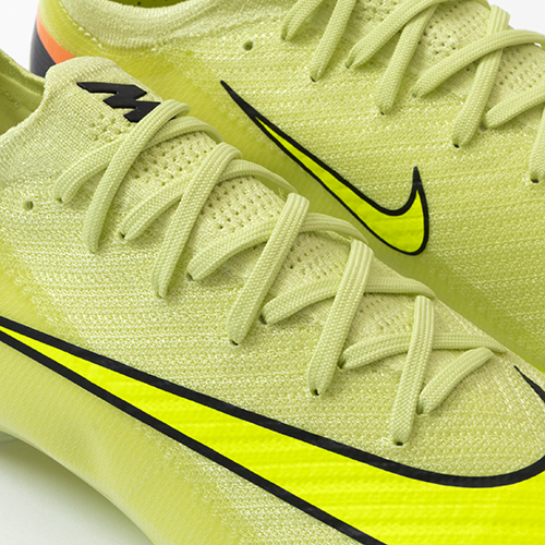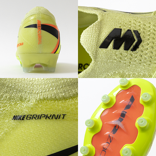 ●全面にFlyknitアッパーを使用してスピードを追求。 驚きの軽さで丈夫なAtomknitをサイドに使用した、軽量でサポート性に優れたデザイン。 Gripknit、Atomknit、Flyknitを組み合わせて、マーキュリアル史上最も薄いアッパーを実現。ボールとの距離を縮めるとともに、すぐに足に馴染みます。
