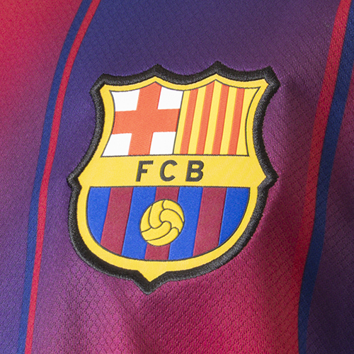 伝統と未来。伝統的なバルサのストライプが、バルサのサッカーにとって不可欠な要素、リズムとエネルギーをもたらす新たなグラデーションと共に再考された。ストライプを斜めに横切るパープルの配色が生まれ、パーツに躍動感と加速感を与えている。