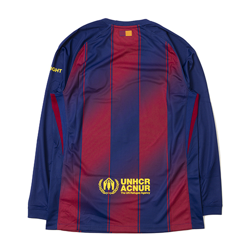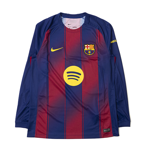 ラ・リーガ(スペイン)、FCバルセロナの2025-2026シーズンHOMEモデル 長袖ユニフォーム(サポーター着用モデル)。