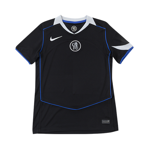 黒を基調に、襟、袖、ソックストップに銀色があしらわれ、2004-05アウェイキットのカラーと曲線的なデザインラインを採用し、象徴的なコレクションを新たな時代のスターたちに届けるデザインです。関連商品