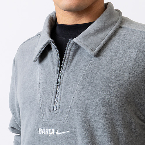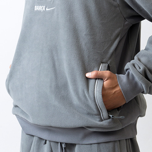 FCバルセロナをさりげなくアピールするのにぴったり。ミニマルで落ち着いたデザインの Therma-FIT シャツは、両面に起毛加工を施した抜群に柔らかいフリース素材を使用。暖かい着心地です。クラシックなフィット感で、ジッパー付きポケットに必需品を安全に収納できます。