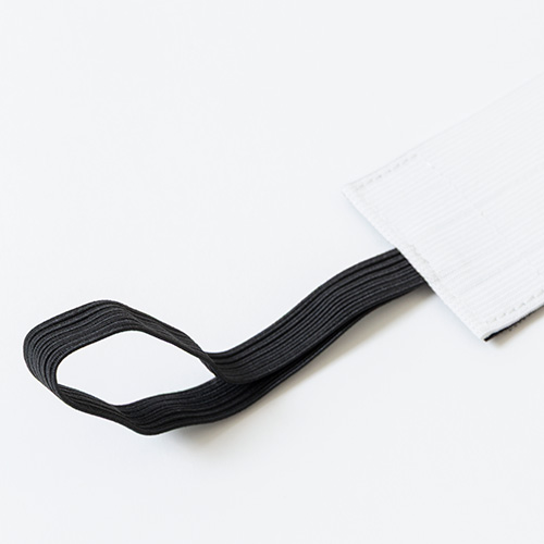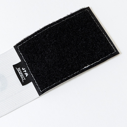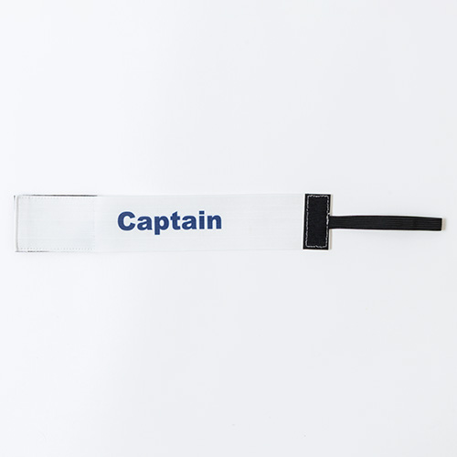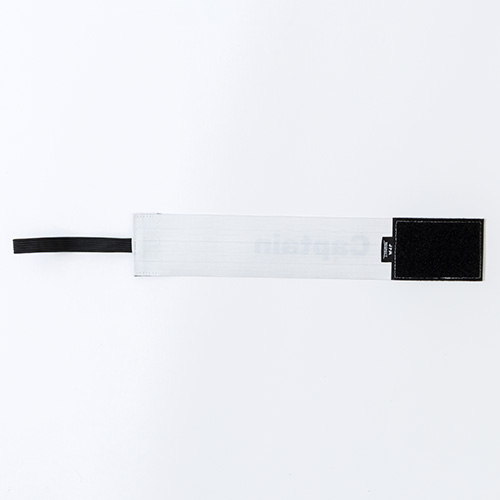 一般的な通称としては「キャプテンマーク」 と呼ばれている腕章です。着用方法としては、まず先に細い方のゴムを腕に通してから、本体を上腕に巻き付けて、お好みの位置で留めます。