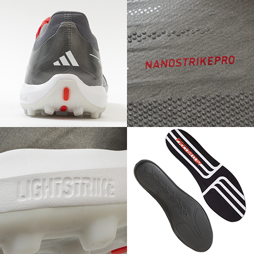 ●Nanostrike(ナノストライク)プロメッシュテクノロジーを採用。革新的なメッシュ構造がソフトで軽い履き心地を実現し、触覚フィードバックエリアが精確なキックをサポートする。