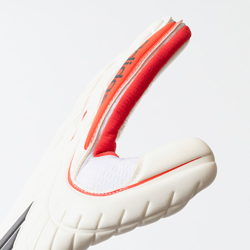 ●ネガティヴカットのデザインで指に優れたフィット感をもたらし、キャッチしたり弾いたりするときのコントロールと精度を高める。サムラップでグリップの範囲が広がり、厳しい状況でもボールを捉えて離さないようにサポート。