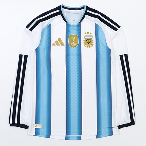 このユニフォームは、ワールドカップで3度の優勝(1978、1986、2022)を果たしたチームが着用していたユニフォームにインスパイアされており、そのレガシーに敬意を表している。ショーツとソックスをラインナップに含み、協会の創立年を誇らしくあしらっている。選手たちがピッチで着用する公式の試合用ユニフォーム。隠しUVプリントが施された熱圧着のオーセンティックラベルは、本物の証。