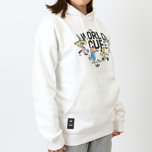 レギュラーフィットの作りで、調節可能なドローストリング付きフードが、程よいフィット感をもたらし、好きなように動きながら、ゲームにも熱中できる。アイコニックなトレフォイルロゴがアディダスのヘリテージを感じさせる、サッカーファン必携のアイテム。