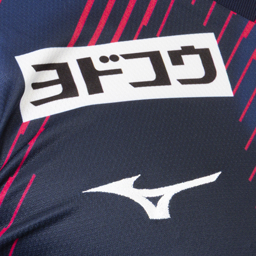 左肩に向けて切り裂くように走る桜の花弁は、果敢に戦う桜の戦士とサポーターの声援が共鳴し、チームが勢いを増す様を表現。