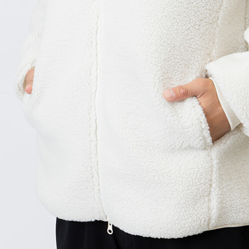 クラブエンブレム入りのボアフーディ。胸元に刺繍で施されたエンブレムロゴ。シンプルながら存在感のあるデザイン。